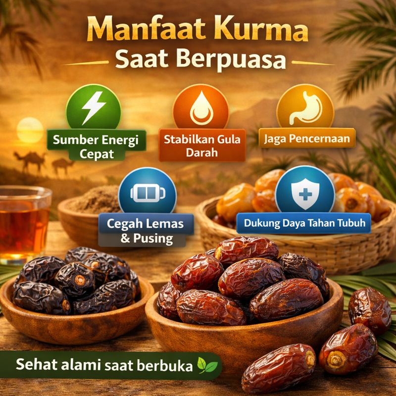 Kurma bukan sekadar buah manis, tetapi sumber nutrisi alami yang sangat bermanfaat saat berpuasa. Mulai dari mengembalikan energi, menjaga pencernaan, hingga mendukung daya tahan tubuh, semua bisa didapatkan dari buah kecil yang penuh khasiat ini.